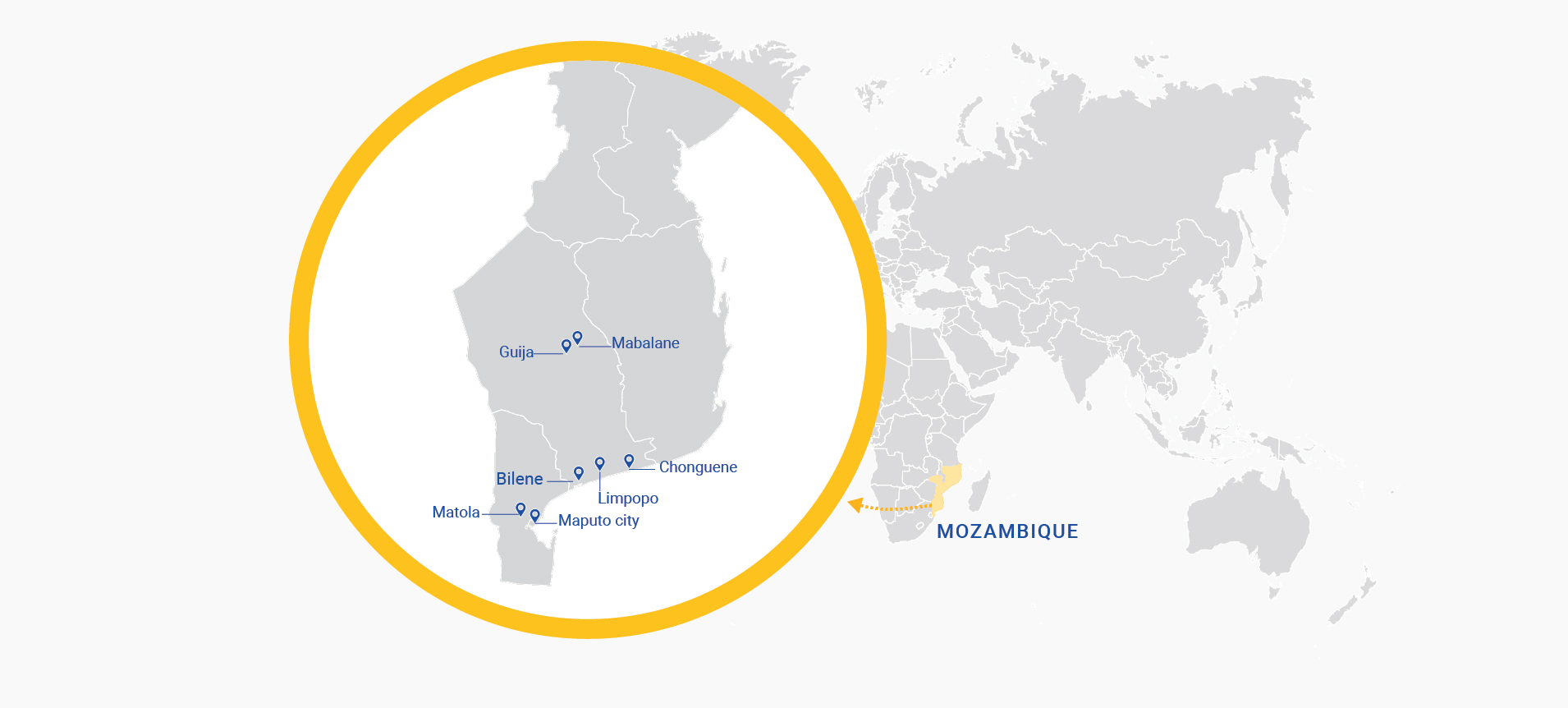 has key intervention programmes primarily functioning in three districts of Gaza province – Bilene, Chongoene, and Limpopo, and the Matola district of Maputo province.